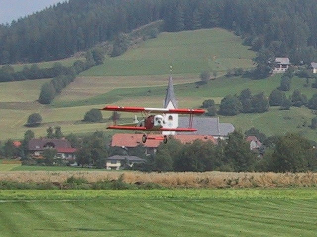 Alle Scale Fans werden mich hassen, aber ich hatte nun mal diesen wunderschönen OS Viertakt-Boxermotor mit 20 ccm und dann diesen Bausatz. Jede Überlegung, den Motor stehend einzubauen (ein Zylinder nach oben, den anderen nach unten) scheiterten, und so hat nun meine DVII links und rechts einen Zylinder, der aus der Verkleidung rausragt. Nach dem ich nun die Scale-Trauer abgelegt habe und der Erstflug kam, war ich für alles entschädigt.Obwohl der Motor noch aus der Winterpause recht zäh war, hat sich sofort gezeigt, daß die Fokker DVII für mich der beste Doppeldecker aller Zeiten ist! Mit der Fokker DVII hat man ein gigantisches Fluggefühl! Sowohl schnell und unheimlich wendig, als auch im (boxertypischen) langsamen Schnatterflug ist die Maschine ein reiner Genuß! Das Starten ist am Anfang etwas ungewohnt, da man am Stand das Höhenruder recht stark zieht, Vollgas gibt, mit Seite nach links etwas ausgleicht, nach den ersten 2-3 Metern das Höhenruder fast in die Neutralstellung zurückläst, um dann nach ca. 6-7 Metern wieder zu ziehen - und die DVII steigt kräftig empor. Klar, im Bausatz steht ein 8-15 ccm Viertakter als Empfehlung, wobei 10 ccm als optimal gilt - da bin ich mit 20 ccm natürlich überpowered, aber ich betreibe meinen Boxer auch mit einer 16x6er Holzlatte. Damit hat der Propeller schon fast Scalegröße. Man bedenke, daß eine 2-Meter DVII mit einem 33,5 ccm Viertakter auch nur mit einer 18x6 fliegt (hier sieht der Prop aber dann wirklich schon lächerlich klein aus). Leider aber hatte der 20ccm Boxer nach 6 Jahren Einsatz in der DVII einen Schaden an der Kurbelwelle. Im Flug hat es das Teil zerlegt. Klarerweise wurde dabei auch ein Pleuel beschädigt. Ersatzteile für diesen Motor sind weltweit eigentlich keine mehr aufzutreiben. Die Alternative: Naja, eigentlich war die DVII ja ein Jagdflugzeug und kein Bummler. Also wird sie auch den 26 ccm Boxer vertragen, oder? Der FT 160 ist rund 220 Gramm schwerer als der FT 120. Das Mehrgewicht aber kann ich fast kompensieren, wenn ich statt dem alten NiCd 1800mAh Akku mit rund 250g einen neuen NiMh Twicell 1700mAh mit 100g verwende. Trotz des riesigen Motors und des schweren Akkus in der Nase war meine DVII mit dem FT 120 nämlich immer noch etwas schwanzlastig. |